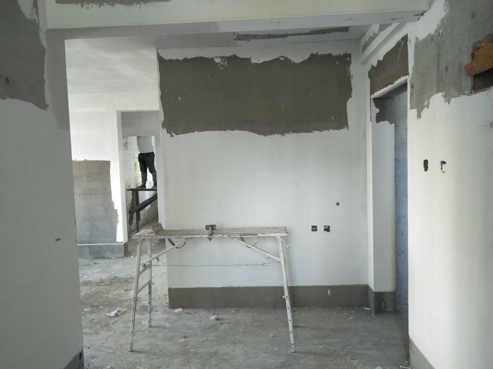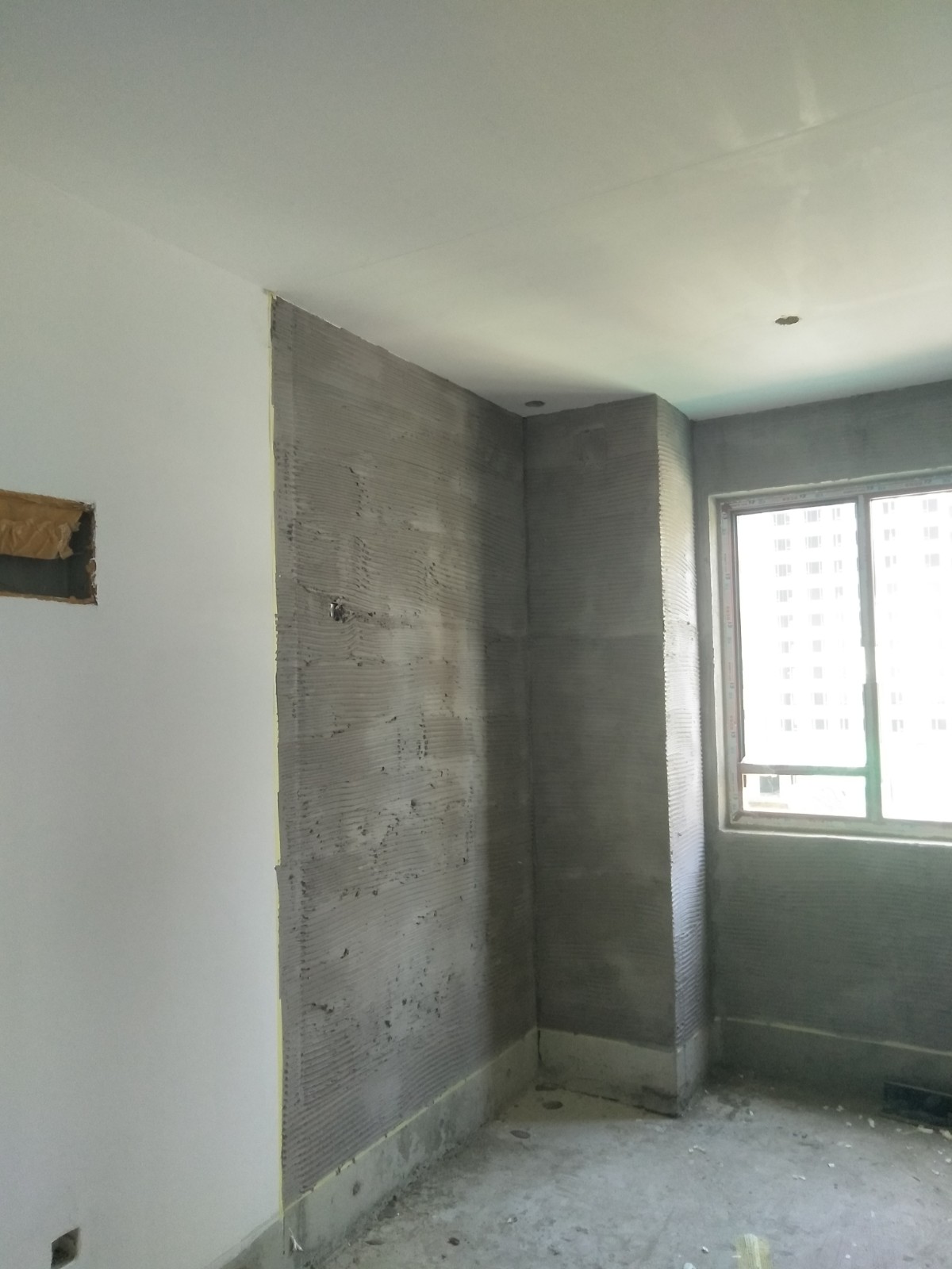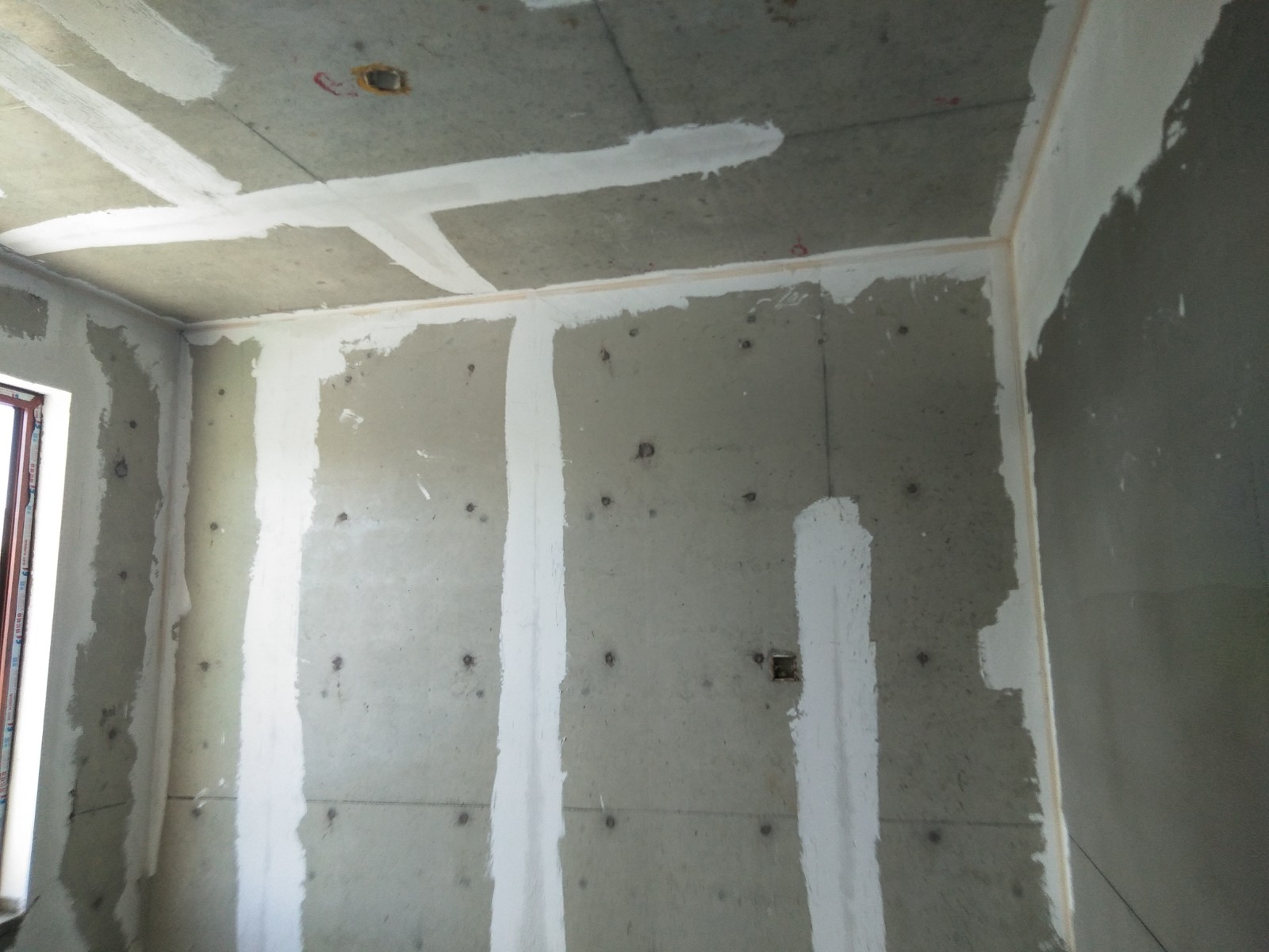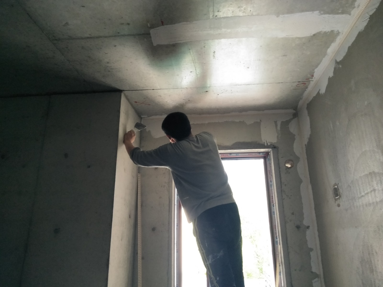 室內房間:墻面用抗裂砂漿找平垂直,陰陽下角線,用821膩子批二遍。